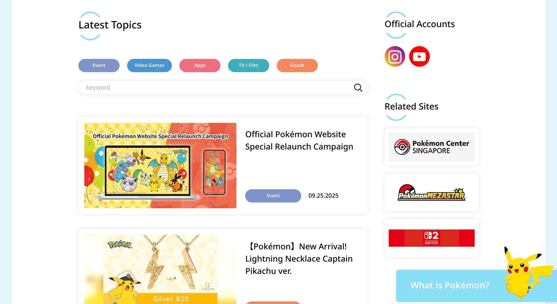 The official Pokémon website was relaunched on 25 September, 2025! Stay tuned as we showcase some of the new and improved features of this site. For the first day, let’s take a look at the homepage and the brand-new look of the website!