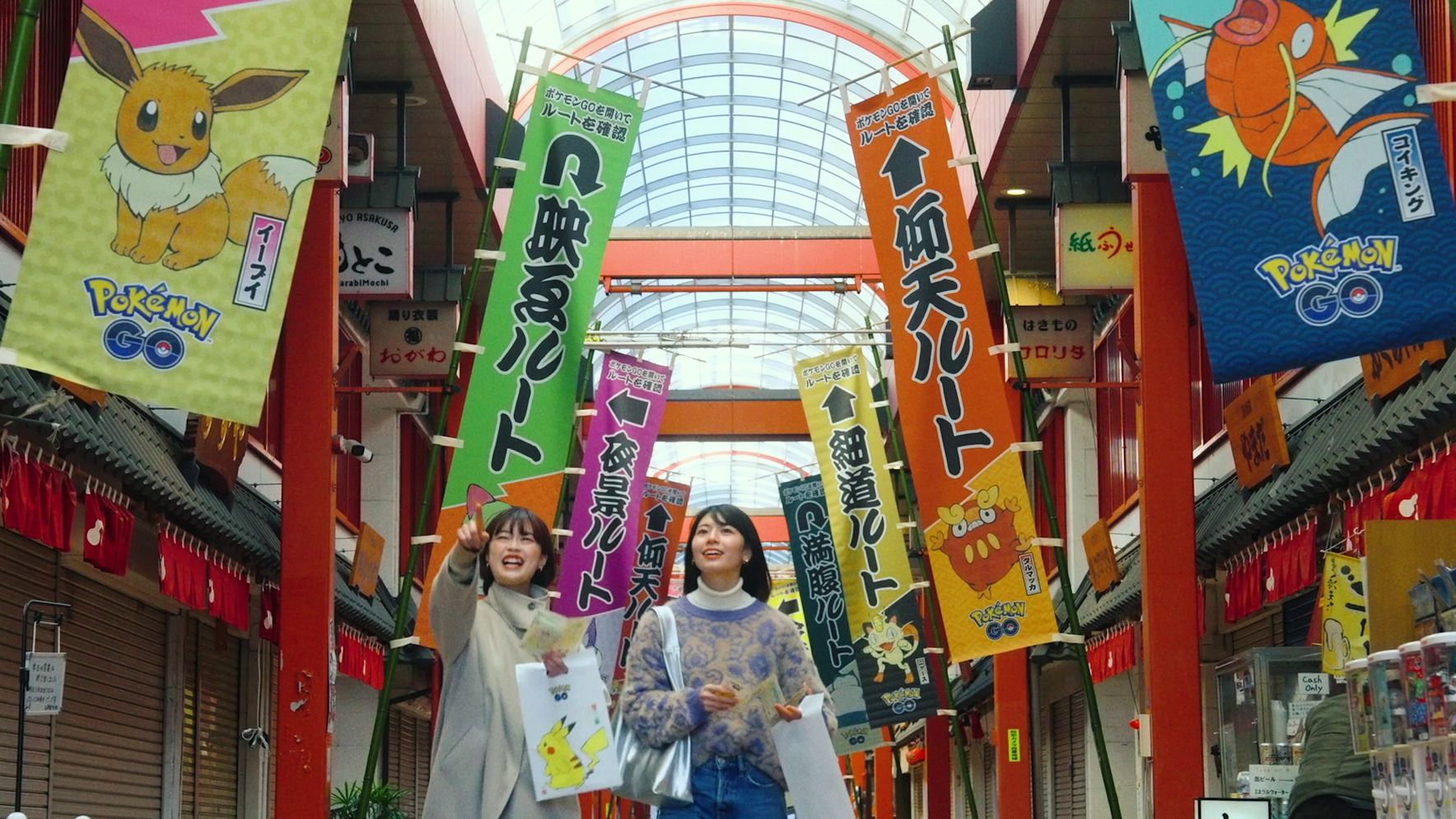 Other official Routes took the visitor beyond the usual Asakusa landmarks – Sensoji Temple, Kaminarimon Gate, Nakamise Shopping Street, etc. – to off-the-beaten-path locations of surprise and discovery. Walking along these Routes, the explorer saw Pokémon-themed decorations subtly placed so as not to spoil the natural appeal of the site. Special care was also taken to ensure optimal safety: for example, Routes didn’t include places too narrow for safe wandering. In these and other ways, the 8 official Pokémon GO Routes in Asakusa were designed for both enjoyment and safety.